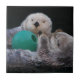 Azulejo cerâmico com a imagem fotográfica de duas, muito fofinhas e divertidas lontras marítimas com um brinquedo de bola. Selecione o tamanho do seu azulejo. Faz uma trivet de cozinha excelente!