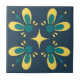 Azulejo De Cerâmica Teal e amarelo no padrão floral C de intricato azu