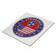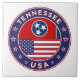 Crachá do Tennessee com bandeira do Tennessee e bandeira dos EUA, cores, forma arredondada. Emblema do Tennessee. Selo do Tennessee. Coleção dos Estados Unidos.