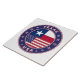 Crachá do Texas com bandeira do Texas e bandeira dos EUA, cores, forma arredondada. Emblema do Texas. Selo do Texas. Coleção dos Estados Unidos.