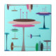 O art deco denominou o design na turquesa, no rosa, nas cinzas e em um respingo do roxo. As imagens olham como as torres futuristas com pólos longos e cobertas com antena. São retro ou a ficção científica?