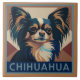 Foto de Chihuahua estilizada em tons retrorados ousados, destacando a expressão de alerta da raça, orelhas grandes eretas e casaco fina de cabelos longos. Conhecida como a menor raça de cães, Chihuahua é espirituosa, leal e cheio de personalidade, fazer-a como favorita entre os entusiastas da raça dos brinquedos.