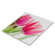 Azulejo De Cerâmica Tulipas Rosa com Foto de Folhas Verdes