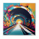 Uma pintura digital vibrante do Túnel Tran i. O túnel está coberto de grafites coloridos. A pintura captura a beleza e a energia do túnel