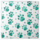 Azulejo cerâmico com patas de animais de corte, sem costura. Pegadas de gato ou de cão com tartaruga abstrato vista em fundo branco. Turquesa Brilhante, pintada e puncionada. Padrão do estilo leopardo da selva abstrato, Azulejo cerâmico. Azulejos de cerâmica para banheiro infantil. Coleção De Patas De Animais Selvagens.