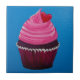 Uma pintura acrílica de um cupcake de veludo vermelho delicioso com glacé rosa e coração. Estes azulejos adoráveis vão adoçar a tua casa!