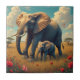 Azulejo De Cerâmica Uma doce mãe sentimental e elefante bebê