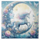 Um belo unicórnio e a lua feitas em cores pastéis.