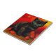 Azulejo com um gatinho preto no estilo de Vincent van Gogh! Este gatinho fofo se posou com flores vermelhas. O presente perfeito para amantes de gatos e colecionadores de arte holandeses!