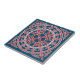 Obtenha este Azulejo cerâmico na moda com esta coroa romântica românica romântica romântica romântica das folhas em vermelho e branco. O fundo é azul. Um design medieval românico. Consiste em folhas dispostas em uma coroa ao redor de uma cruz. Este estilo é do período românico. A idade medieval deu-nos um excelente de padrões. Comecei a explorar esses estilos há alguns anos e procurei exemplos. Principalmente porque queria padrões que não eram tão comuns. E eu queria algo que parecesse antigo.