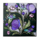 Azulejo De Cerâmica Vidros de estilo verde e flores roxas