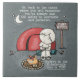 O Little Boy está voltando ao básico como é visto em um acampamento. Com a tenda atrás dele, ele senta-se no saco de dormir enrolado enquanto torce um cachorro quente sobre o fogo aberto. A citação de David A. Carrizales é ilustrada por Christie Black.