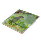O Waxwing de cedro que come bagas fora de um arbusto em Washington ocidental, faz um azulejo ou um trivet colorido muito agradável da foto.