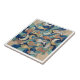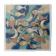 This vibrant coastal tile design features a lively mosaic-style school of fish swimming through swirling waves of teal, aqua, navy, and sandy beige. Each fish is detailed with warm tones of coral red, sunlit gold, sea-glass green, and pearly white, accented by whimsical spirals and stylized curves. Crescent moon shapes drift among the fish, giving the piece a playful sense of rhythm and motion. The layered textures and bold color contrasts create an energetic, artistic look that brings a bright, modern coastal spirit to any décor theme. Note: design may contain generative content