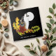 Um lobo uivando em uma lua de cheio com folhas de outono e bolotas contra um pano de fundo de preto.