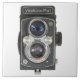 Um clássico abaixo da classificação desta câmera de filme quadrado japonesa de 2 1/4 pol. Um estúdio de alta qualidade fecha a câmara de reflexo da lente gêmea vintage sobre um fundo comum.
