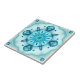 Azulejo de arte fractal em azul e turquesa com padrão geométrico de estrela floral. Excelente como decoração de parede para cozinha ou banheiro!