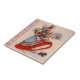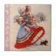 Azulejo decorativo mostrando um jovem casal vitoriano e seu pequeno cachorro voltando para casa na neve do compro de Natal.