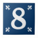 Azulejo personalizado com azulejo de parede numerado com tipografia elegante. Boa ideia de presente para uma nova festa de aquecimento da casa e da casa. Cores de texto e fundo personalizáveis. Marinho azul e parede branca, placa de decor inicial.