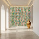 Este azulejo apresenta um padrão repetitivo de estampas de tetos e silhuetas de animais bronzeados em um fundo leve de pêssego. Este design lúdico é perfeito para adicionar um toque de diversão a qualquer espaço, especialmente para amantes de animais de estimação. O padrão perfeito o torna ideal para criar um design contínuo através de vários azulejos.