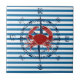 azulejo cerâmico com padrão horizontal azul claro e branco com tema oceânico náutico apresenta uma bússola de navio e um caranguejo vermelho!