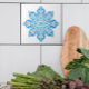 Este azulejo decorativo de 6" tem um intricado medalhão azul claro/mandola sobre fundo branco. Isto será lindo na sua cozinha, ou na design do banheiro. Não se esqueça de olhar para os outros azulejos nesta coleção. Do Azulejo de Oregon Fay Jones Day.