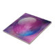 Contra um pano de fundo de azul real e nuvens intrincadas rosa quente como galáxias distantes, há uma única esfera de vidro lisa com um fractal giratório suspenso dentro.