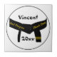 Personalize o Azulejo exclusivo do Cinturão Negro Grau de segundo de Artes Marciais com um nome pessoal e um ano para comemorar quando seu artista marcial se tornou um segundo dan. Um azulejo de artes marciais faz uma ideia personalizada única de presente de manutenção para um teste de promoção, aniversário ou feriado da faixa preta. Adicione uma moldura para criar uma trivet de na moda para a mesa da cozinha! Este segundo personalizado Dan Martial Arts azulejo esportivo apresenta uma fotografia digitalmente aprimorada de um cinto preto com dois bares dourados. Adequado para todas as artes marciais incluindo karate, taekwondo, kung fu, judo e ju jitsu.