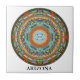 Mandala de Digitas feita com símbolos & gráficos que comemoram o estado de arizona em um azulejo branco com nome do estado no texto corajoso, preto de Garamond. Este é o segundo em o que será uma série de todos os cinqüênta estados. Este 4,25" X 4,25" azulejo do quadrado são perfeito para a exposição ou o uso como uma porta copos. Igualmente um 6" X 6" azulejo estão disponível para que você personalize. Você poderá recolher um para cada estado que você visitou. Você pode ver um video animado explicativo em linha em www.travelingmandalas.com
