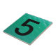 Azulejo do número da casa com um fundo da foto da água do oceano do verde de mar.