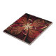 © 2014 de Copyright, Susan Wallace. O vitral do falso sae nas máscaras de vermelho, laranja e o ouro molda uma flor central do amarelo brilhante nesta parte abstrata intrincada.