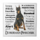 Este azulejo do Pinscher do Doberman, caracterizando os traços e a personalidade da raça, é um grande presente para todo o amante do Doberman. Adicione um de nossos caixas ou quadros para todo o presente especial extra, ou use-o simplesmente como uma porta copos com uma de nossas canecas de harmonização do Doberman.