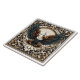 Um azulejo lindamente trabalhado mostra uma águia com asas estendidas, cercada por padrões florais elaborados. O trabalho de arte combina cores ricas e designs detalhados, criando uma peça visual marcante.