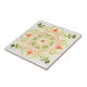 Azulejo cerâmico com design de cor d'água floral de abstrato geométrico em verde e laranja mole. A imagem é grande o suficiente para o azulejo pequeno ou grande e ajustado bem na cozinha ou no banheiro.