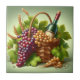 O azulejo cerâmico é apresentado com uma adorável uva e garrafa de vinho num impressão de cesto. Personalize este item ou comprar como está. Imagem licenciada