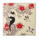 Azulejo japonês do gatinho e do filhote de cachorro de Ito Jakuchu. Japonês Ukiyo-e. Uma pintura bonito pelo artista japonês Ito Jakuchu. Este trabalho é uma das pinturas as mais bonitas de Jakuchu que caracterizam um gatinho doce que escala em uma árvore com flores vermelhas depois que pássaros porque uma papoila olha curiosa de baixo de. Um presente bonito para fãs de Ito Jakuchu, arte japonesa, filhotes de cachorro, gatinhos, e pintura asiática.