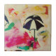 A Baixa Califórnia sempre tem boas memórias para mim como um lugar de diversão, sol e cores brilhantes. Esta pintura foi inspirada por guarda-chuvas nostálgicos e como eles parecem alinhados, um banquete visual para os olhos. Artista: Joyce Martin, La Playa, 2001