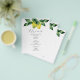 Esta folha de cardápio do orçamento apresenta uma borda superior de limões de aquarela e botânicos. Use os campos de modelo para DIY (Esclarecer os detalhes personalizados). A elegante design é uma escolha encantadora para o Alafresco, jardim e casamentos de destino na Itália. Para ver mais menus e ideias de janto de casamento italianos personalizados como esta visite www.zazzle.com/dotellabelle Arte a aquarela e design por Victoria Grigaliunas do Do Tell A Belle.