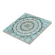 Este design de círculo concêntrico apresenta camadas de padrões brancos, turquesas e marrons inspiradas por teclas celtas e índias, como vinhas, fitas e flores de lótus. Este azulejo pode ser enquadrado para criar uma trivit ou colocar dentro a caixa de presente de madeira. Azulejos sem um quadro também ajustado a caixa de presentes para criar um conjunto correspondente.