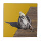 Pelicano sentado sobre as tábuas ásperas de um píer de madeira. Sua sombra se estende do plantio sobre a "superfície" de fundo. Personalizar para alterar a cor do fundo.