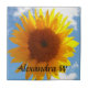 Girassol alegre e amarelo brilhante contra um céu azul claro. Adicione o seu nome ou outro texto, Perfeito para corresponder à sua paisagem com tema decorado ou apenas adicione um toque da natureza à volta da casa.