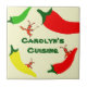 Tempere acima sua cozinha com este azulejo personalizado pimento dos lagostins. O azulejo caracteriza pimentas de pimentão vermelhas, verdes e amarelas com um lagostim da menina que guardara uma colher e um molho picante de madeira quando dois crawdads do menino ajudarem com as pimentas. Personalize o azulejo usando o modelo. Todo o texto é customizável. Um grande presente para esse cozinheiro chefe de Cajun em sua vida!