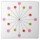 Na moda na tendência design inspirada por designs de meio século modernos com explosão de estrelas atômica em tons de laranja, rosa, verde e preto em branco.