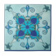 Um azulejo artístico para banheiro ou cozinha com um padrão geométrico floral inspirado no Mediterrâneo em cores lacrimogêneas, azuis e turquesas.