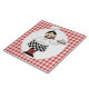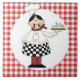 Azulejo ou trivet com beira checkered vermelha e branca e o cozinheiro chefe mustached que guardaram cozinhar a pizza. Uma adição perfeita a alguma decoração da cozinha ou do restaurante.