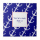 Este azulejo de papel vermelho, branco e azul tem um padrão de âncora branco em um fundo azul. Uma borda vermelha envolve um campo branco para o seu texto personalizado.