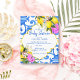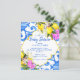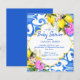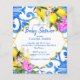 Azulejos azuis Bougainvillea e limão Amalfi Positano estilo Mediterrâneo chá de fraldas convite de orçamento estilo modelo Marrocos esculpido na fronteira, neutro em relação ao gênero.