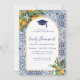 Cartão de convite para licenciatura elegante e moderno. Elegante Convite azul clássico com belos azulejos de aquarelas e laranjas de citrinos.
