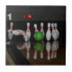 Um azulejo cerâmico com foto de pinos de boliche.