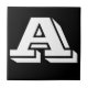 Azulejos cerâmicos. Azulejos de letras maiúsculas ou minúsculas. Você personaliza com a letra ou letras necessárias para seu azulejo cerâmico ou sinal de mosaico. Azulejo para sinais à prova de tempo, números de casa. Branco sobre fundo preto.